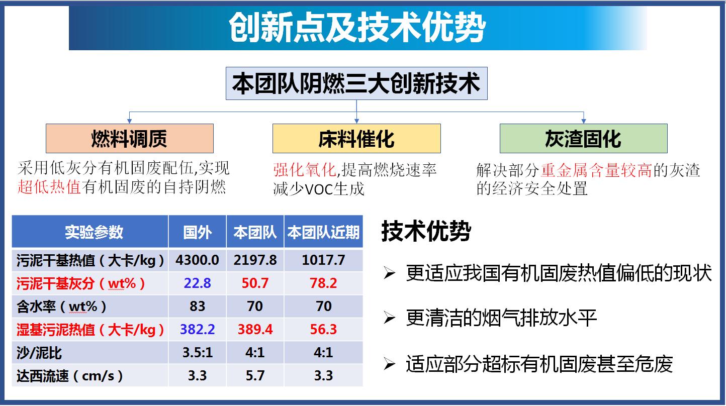我国城镇有机固废具有高含水率、低热值的特点,传统的焚烧处置技术往往能耗高、投资大,难以推广应用。本技术针对高含水有机固废提出无需干化、直接阴燃的技术路线,从原理上克服了低热值固废焚烧处置的技术劣势。