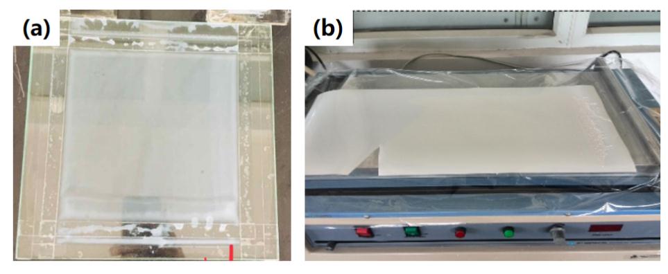 图3 (a) 浇注工艺; (b) 流延工艺制备的BaTiO3/P(VDF-TrFE)纳米复合薄膜