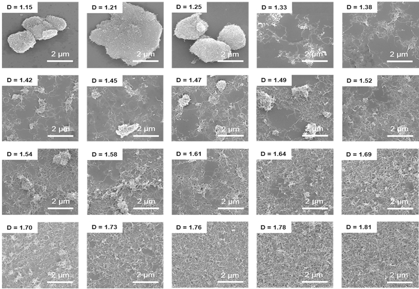基于扫描电镜图片的碳纳米管界面空间填充程度(分形维数)定量表征