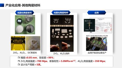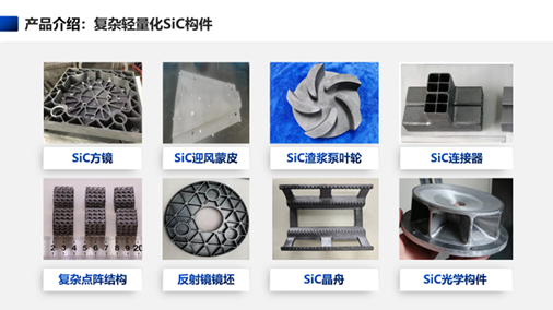 现有的SiC构件主要包括空间遥感卫星反射镜镜坯、光刻机方镜、渣浆泵叶轮、半导体扩散炉晶舟、连接件等构件(图5),这些产品已在北京空间机电研究所(航天508所)、三江航天四院九部、航空工业武汉航空仪表有限责任公司、中国航发湖南动力机械研究所、汉江弘源襄阳碳化硅特种陶瓷有限责任公司、浙江东新材料科技有限公司、陕西固勤材料技术有限公司、深圳市浩宇特电子有限公司、天津皓固科技有限公司等单位成功试用。