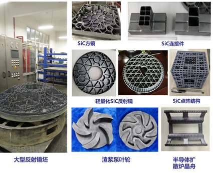 碳化硅(SiC)陶瓷具有具有优异的耐磨性、耐蚀性、耐高温性以及高比强度和低热膨胀系数等特点,是航空航天、电子信息等领域中的关键材料,广泛应用于高分辨率空间遥感卫星反射镜镜坯、大规模集成电路光刻机用激光方镜、化工渣浆泵叶轮、陶瓷装甲、飞行器热防护系统等国家重大战略装备和核心支柱产业。随着相关领域重大装备的快速发展和更新换代,更加严苛、特殊的使用工况对SiC陶瓷构件的结构与性能提出了更高的要求,逐渐向复杂化、整体化、轻量化方向发展。然而,由于无压烧结等传统工艺在成形复杂SiC陶瓷构件时存在高温烧结变形大、缺陷敏感性强、烧结后难加工、某些复杂结构无法成形等突出问题,因此,复杂SiC陶瓷构件的整体成形成为世界性难题。