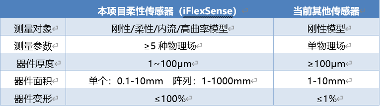 从下表可以看出,提出的大面积多功能柔性智能传感阵列技术与装备,整体技术达到国际先进水平,主要技术指标达到或超过同类气动测量技术先进水平。