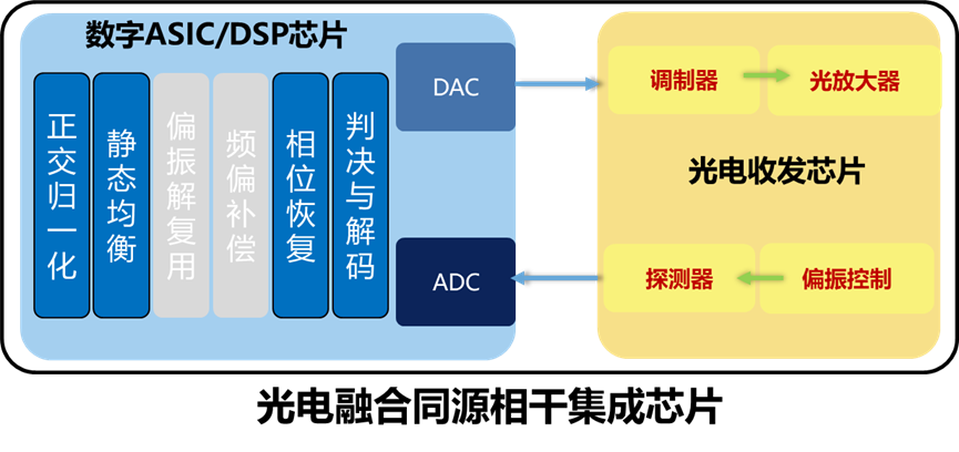第一阶段:围绕光电融合同源相干芯片着力突破高速相干传输关键技术信号处理的难点,研制全国产低成本相干传输??榧吧璞?。