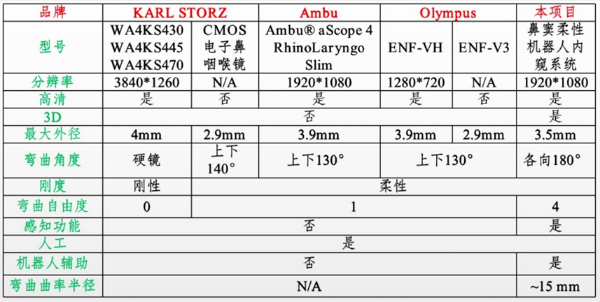 表1 现有市售最先进的鼻腔内窥镜和本成果对比
