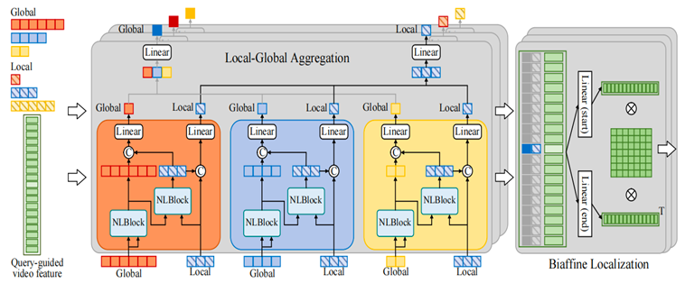 ü 融合相邻帧中局部上下文信息及视频中全局上下文信息以进行精准视频定位的上下文感知的双仿射定位框架CBLN,CHARADES-STA性能提升9%;