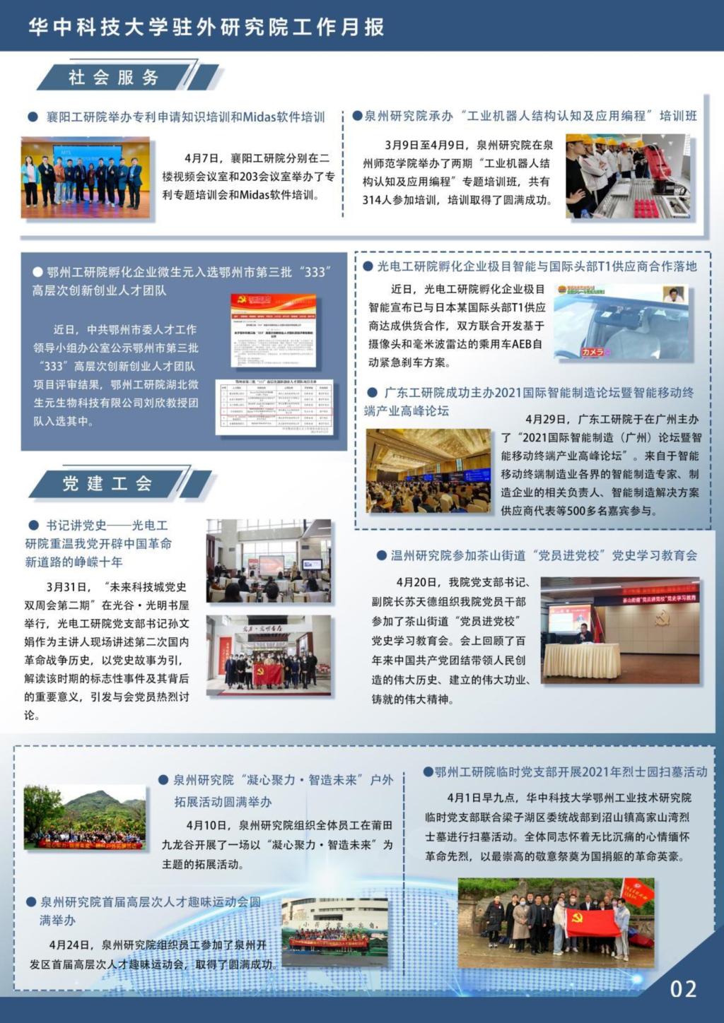 华中科技大学驻外研究院4月工作月报(2021年第2期)